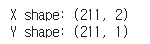 총 211개의 training set이 존재하며, feature x1, x2는 point의 좌표값입니다. label은 0 or 1로 구성되어 있으므로, 우리는 이진분류를 위한 모델을 생성해야 합니다.