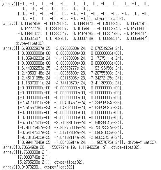 아래는 레이어 순으로 weight/bias 파라미터의 값입니다.