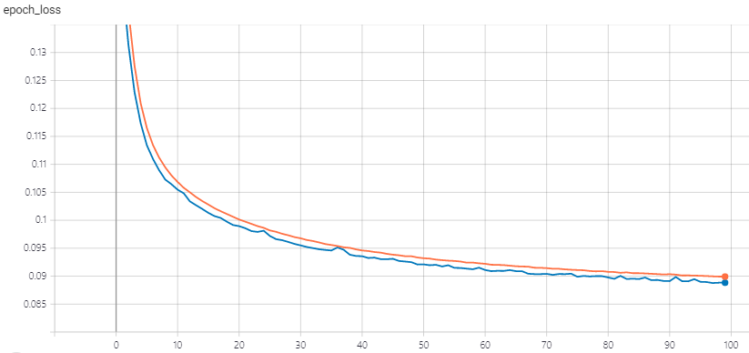 100 epoch 에서, train/test loss가 0.8까지 도달합니다. 이전 모델보다 훨씬 향상되었고, 이미지 또한 훨씬 선명해진 것 같습니다.