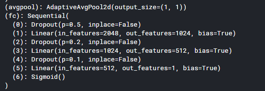 Loss function으로는 Binary Cross Entropy Loss(BCELoss())를 사용했고, Optimizer는 Adam을 사용했으며, ResNet을 fine turning하기 때문에 learning rate를 0.00001로 낮게 설정했습니다.