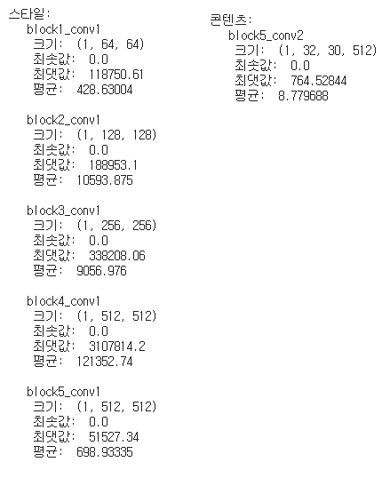 이미지의 콘텐츠 및 스타일의 표현을 얻기 위한 중간층 살펴보기