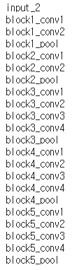 모델은 VGG19 모델을 사용하며, VGG19에 어떤 layer들이 있는지 살펴보겠습니다.