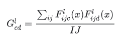 Gram Matrix는 위의 식으로 구할 수 있으며, 이 식은 tf.linalg.einsum함수를 통해 계산할 수 있습니다.(분자항 계산)