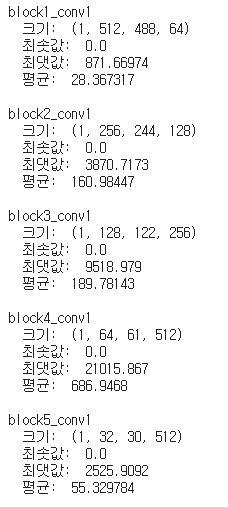 위 함수를 통해서 각 층에서의 style 이미지의 output을 살펴보도록 합니다.