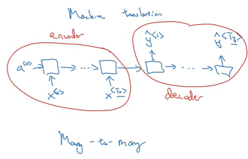 기계번역(machine translation)는 Many-to-many 아키텍처지만, 입력과 출력의 길이가 다를 수 있다.(\(T_x != T_y\))