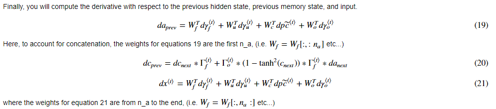da_prev = np.dot(parameters['Wf'][:,:n_a].T,dft)+np.dot(parameters['Wi'][:,:n_a].T,dit)+np.dot(parameters['Wc'][:,:n_a].T,dcct)+np.dot(parameters['Wo'][:,:n_a].T,dot)