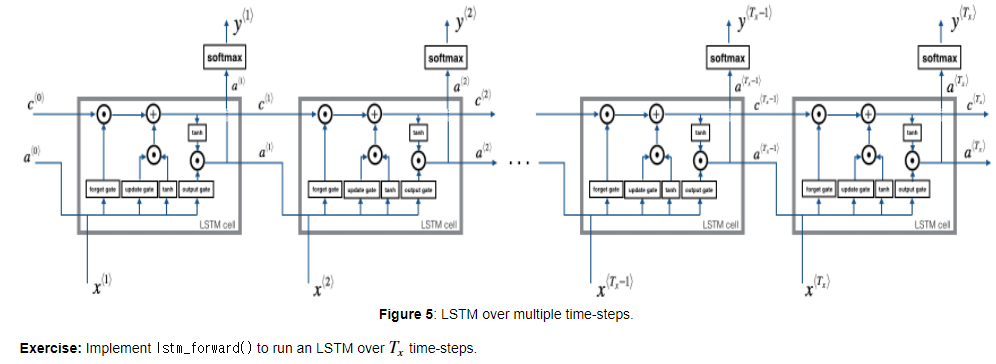 Implement the forward propagation of the recurrent neural network described in Figure (3).