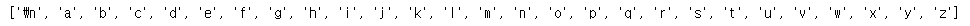 총 19909개의 문자가 있고, 사용되는 문자는 총 27개(a-z, '\n')입니다. '\n'는 <EOS>와 유사한 역할을 합니다.