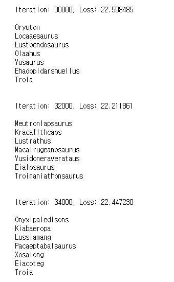 주제는 공룡 이름 짓기이며, 기존 공룡 이름들로 학습해서 새로운 공룡 이름을 짓는 모델입니다.