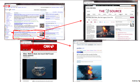이러한 알고리즘을 Clustering Algorithm이라고 하며, 구글 뉴스에서 사용되고 있다. 구글 뉴스는 매일 수만가지의 기사를 수집하고, 수집된 기사들을 유사한 항목(동일 topic)으로 묶는다(Clustering). 따라서, 어떤 뉴스를 검색했을 때, 유사한 기사들을 검색한다.