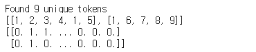 one_hot_results = tokenizer.texts_to_matrix(samples, mode='binary')