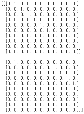 최대 시퀀스의 길이가 10이고, 각 단어는 각 row열에 해당되고, 그 단어에 해당되는 index가 1로 채워져 있습니다.