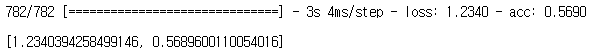 test data의 정확도는 약 57%로 valid acc와 유사하게 나왔습니다.