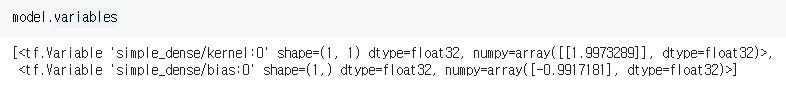 그리고 model의 variables 변수를 통해서 모델의 weight와 bias를 확인할 수 있습니다.