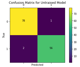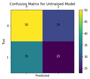 plot_confusion_matrix(test_Y, tf.round(outputs), title='Confusion Matrix for Untrained Model')