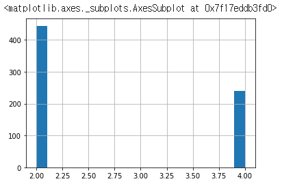 참고로 2는 benign(양성)를 의미하고, 4는 malignant(악성)를 의미합니다.