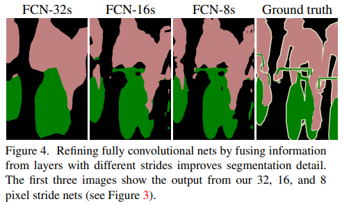 여기서 FCN-32s, FCN-16s, FCN-8s로 세 가지의 결과를 출력할 수 있는데, 숫자는 사용한 Stride를 의미합니다.