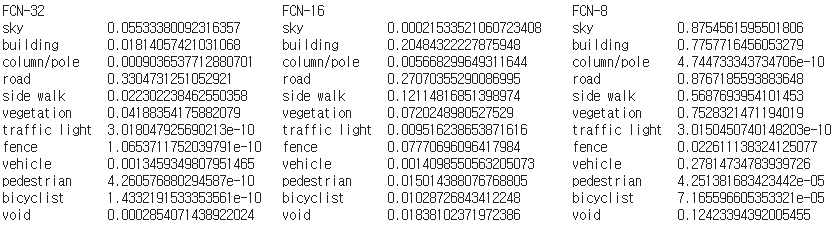FCN-8이 확실히 높은 점수를 얻고 있습니다.