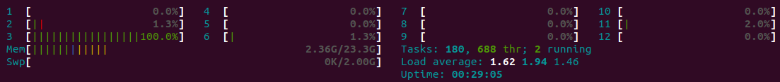 3번째 CPU의 사용량이 100%인 것을 확인할 수 있습니다.