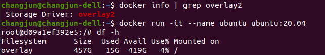 컨테이너 내부에서 사용되는 파일시스템의 크기는 도커가 사용하고 있는 스토리지 드라이버에 따라 조금씩 다릅니다.