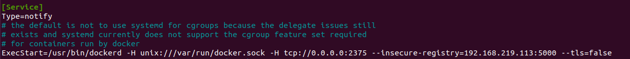 dockerd -H tcp://0.0.0.:2375 -insecure-registry=192.168.100.99:5000 -tls=false