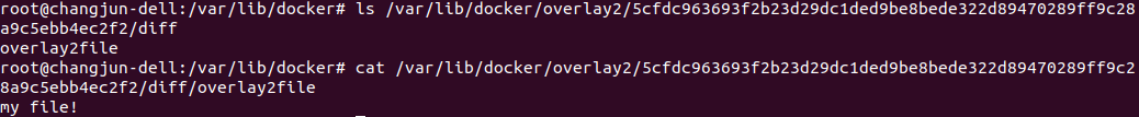 -init이 붙은 디렉토리가 방금 생성한 컨테이너 레이어를 의미하고, -init이 붙지 않은 디렉토리는 변경점, 여기서는 overlayfile을 가지고 있는 레이어(최상위 레이어)를 의미합니다.