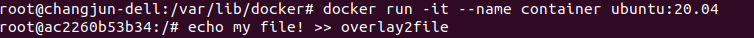 실행 후, 컨테이너를 생성하고 overlay2file을 만든 후에 Ctrl + P,Q로 컨테이너를 빠져나옵니다.