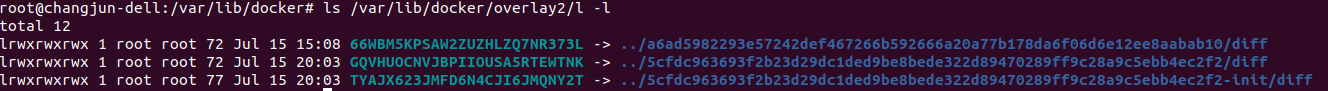 마지막으로 l 디렉토리는 심볼릭 링크로 레이어의 식별자를 포함하고 있습니다.