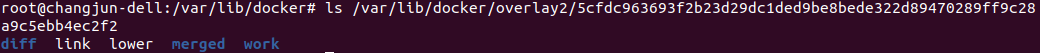 a6ad5982293e... 디렉토리는 ubuntu:20.04의 이미지 레이어이고, 5cfdc96...에서 -init이 붙은 디렉토리는 방금 생성한 컨테이너이고, 붙지 않은 디렉토리는 변경점(overlay2file)이 포함된 최상위 레이어입니다.