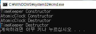 바로 기본 클래스의 소멸자로 가상 소멸자로 만들어주면 됩니다. 즉, TimeKeeper의 소멸자에 virtual 키워드만 붙여주면 됩니다.