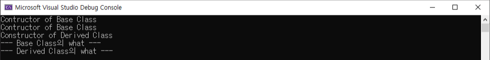 std::cout << "--- Derived Class의 what ---\n";