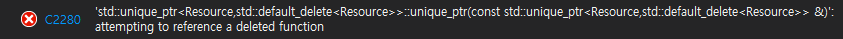 만약 아래처럼 unique_ptr을 복사하려고 하면 다음과 같은 컴파일 에러가 발생합니다.