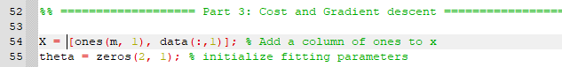 위 코드는 앞서 구현했던 costFunction.m 과 완전히 동일하다.