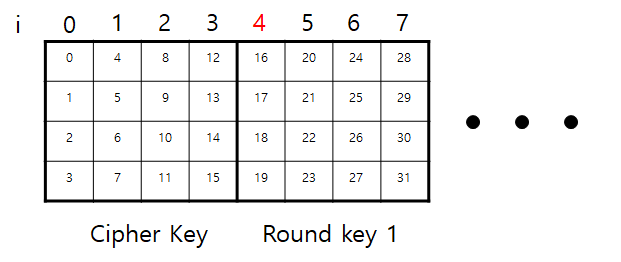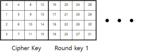 생성된 라운드키의 인덱스는 아래처럼 위치하게 됩니다.