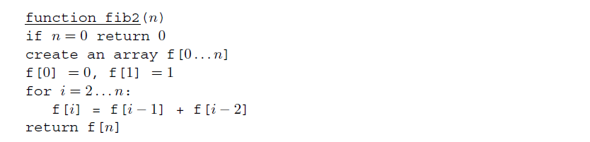 즉, 지수적인 수행 시간이 필요한데, 예를 들어, \(F_{200}\)을 계산하기 위해서 위 알고리즘은 \(T(200) \geq F_{200} \geq 2^{138}\) 만큼의 기본 연산을 수행해야 합니다.