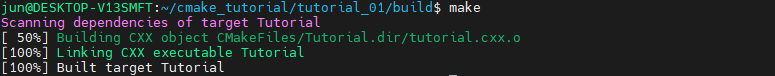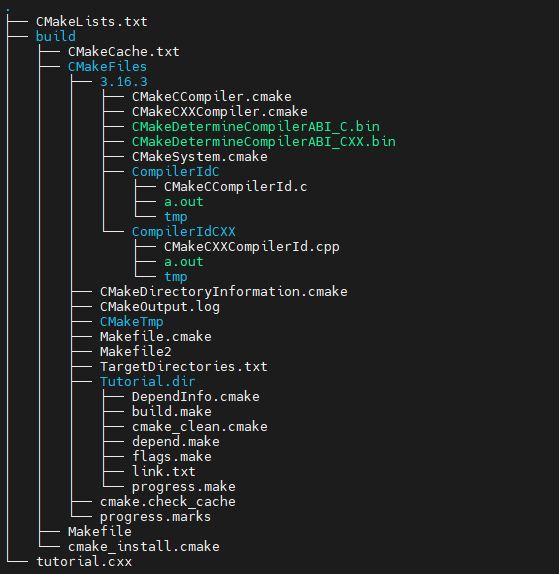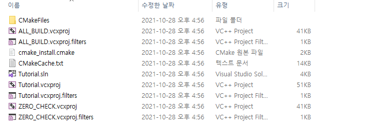 우리는 이 명령어로 Tutorial이라는 실행 파일을 생성하도록 설정했습니다. 따라서 위에서 빌드를 수행했을 때, 결과물에 Tutorial 또는 Tutorial.exe 라는 실행파일이 생성된 것을 확인할 수 있습니다.