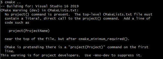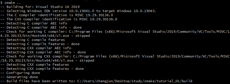 - Windows에서 'cmake ..' 실행 결과