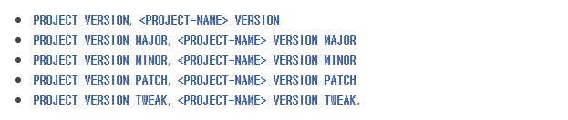 버전이 추가되면, 아래의 CMake 변수들의 값이 set됩니다.