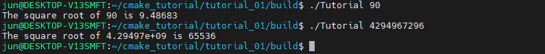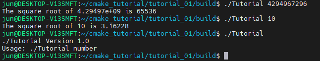 변경된 소스코드에서는 cmake 단계에서 생성된 TutorialConfig.h를 include하여 사용하는 코드가 추가되어 있습니다.