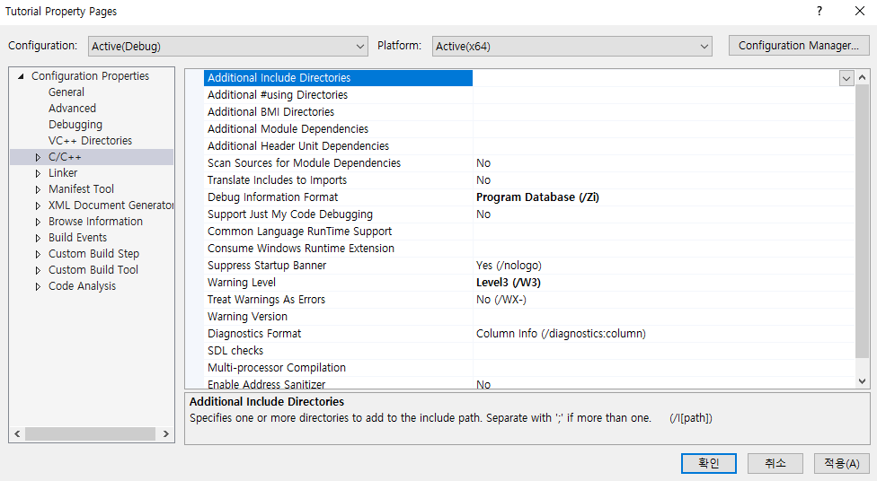 이는 윈도우를 예로 들면, 비주얼 스튜디오에서 [Properties - C/C++ - Additional Include Directories]에 추가하는 것을 CMake에서 해주는 것입니다. 따라서, 윈도우에서 CMakeLists.txt 파일로 다시 빌드 파일을 생성하면, Additional Include Directories에 build 폴더가 추가되어 있을 것입니다.