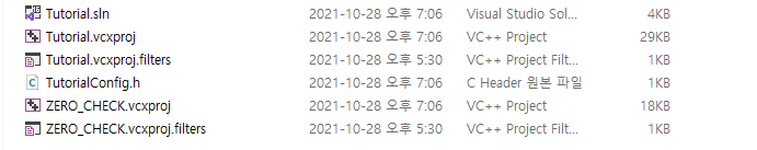 여기서 Visual Studio 솔루션인 Tutorial.sln 을 실행하면, 익숙한 Visual Studio가 실행됩니다.