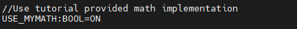option(USE_MYMATH "Use tutorial provided math implementation" ON)