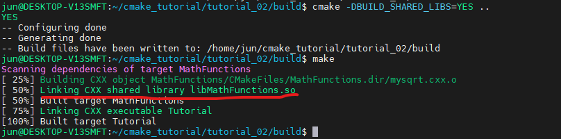 따라서 위 명령은 mysqrt.cxx 소스 파일로 MathFunctions라는 라이브러리를 생성하도록 합니다.
