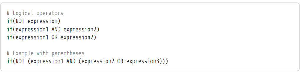 CMake는 AND, OR, and NOT 논리 연산자(logical operators)와 괄호(우선순위를 위해) 지원합니다.