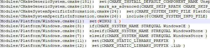 WIN32나 MSVC는 CMake가 실행되면서 설정되는 변수들입니다.