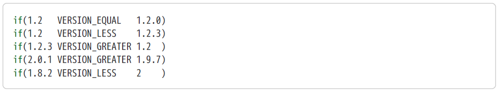CMake는 3가지 카테고리(숫자, 문자열, 버전)로 비교 테스트(comparison test)가 나누어지는데, 모두 아래의 동일한 패턴으로 사용됩니다.