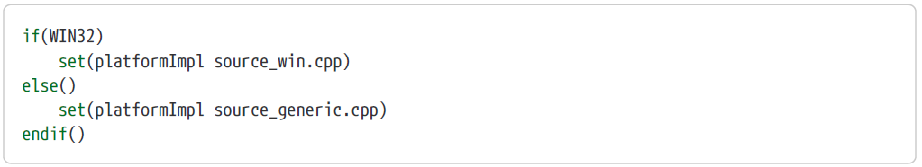 대부분의 경우, 미리 정의된 CMake 변수(컴파일러 및 타겟 플랫폼과 관련된) 의존하는 경우입니다.