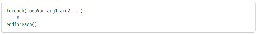 CMake에서는 프로젝트에서 리스트나 값들의 집합에 대해서 반복(iteration)할 수 있도록 다음의 foreach() 명령을 제공합니다.