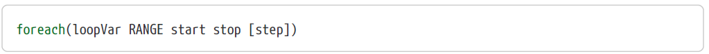 이 명령어는 foreach(loopVar RANGE 0 value)와 동일한 명령입니다. 따라서 이 명령어에서 loopVar는 0부터 value까지 반복되어 수행됩니다. 물론 value값이 음수라면 0부터 -1, -2, ..., value로 진행됩니다.