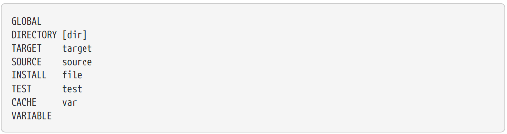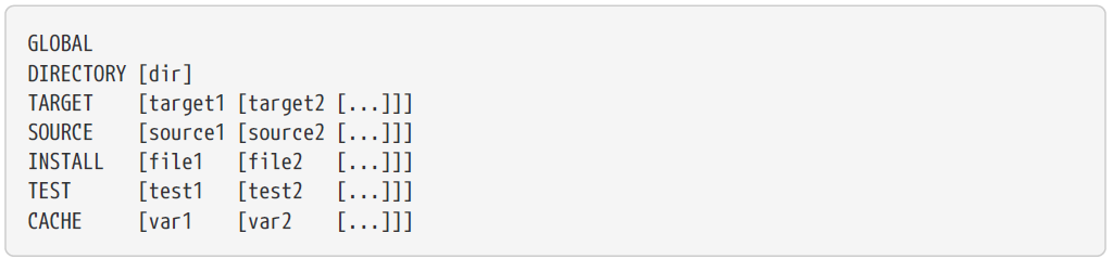 - Directory Properties : set_directory_properties(), get_directory_property()